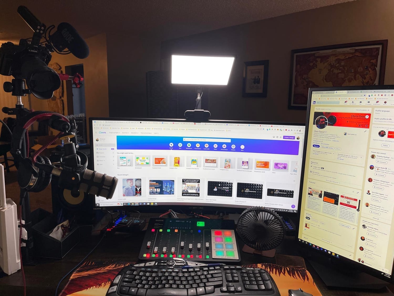 This workstation setup is where the magic happens. - That's a 35" curved monitor next to the 27" vertical one. That's a RodeCaster Pro sound board with a Rode podmic on a boom and stand that holds my Canon EOS 50 w/another Rode mic and bigger lens. I rarely use that as my 2 Logitech video cameras work so well, there's little need for a 3rd camera or for me to hook up a phone, etc. It all contributes to a nice digital playground, doesn't it? - Yes, that's a world map of Indian Jones archaeological discovers, signed and framed on the wall. - I'm a George Lucas fan.