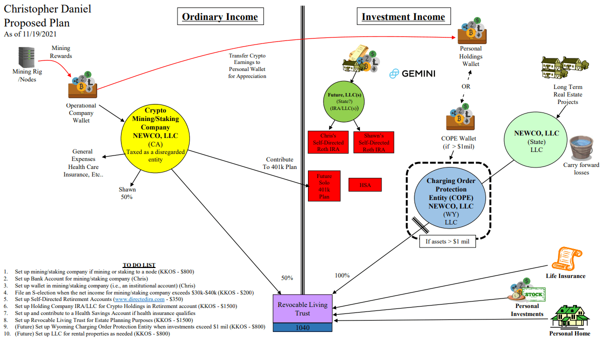 In 2021, I designed the operational blueprint for a high-performance ASIC mining project. Working alongside top-tier legal counsel, I mapped out a multi-entity "moat" integrating operational LLCs, charging order protection, and revocable living trusts. When the 2022 market data shifted, I led the disciplined pivot to fold the operation and preserve capital—a masterclass in data-backed decision-making. Read more at - About page.