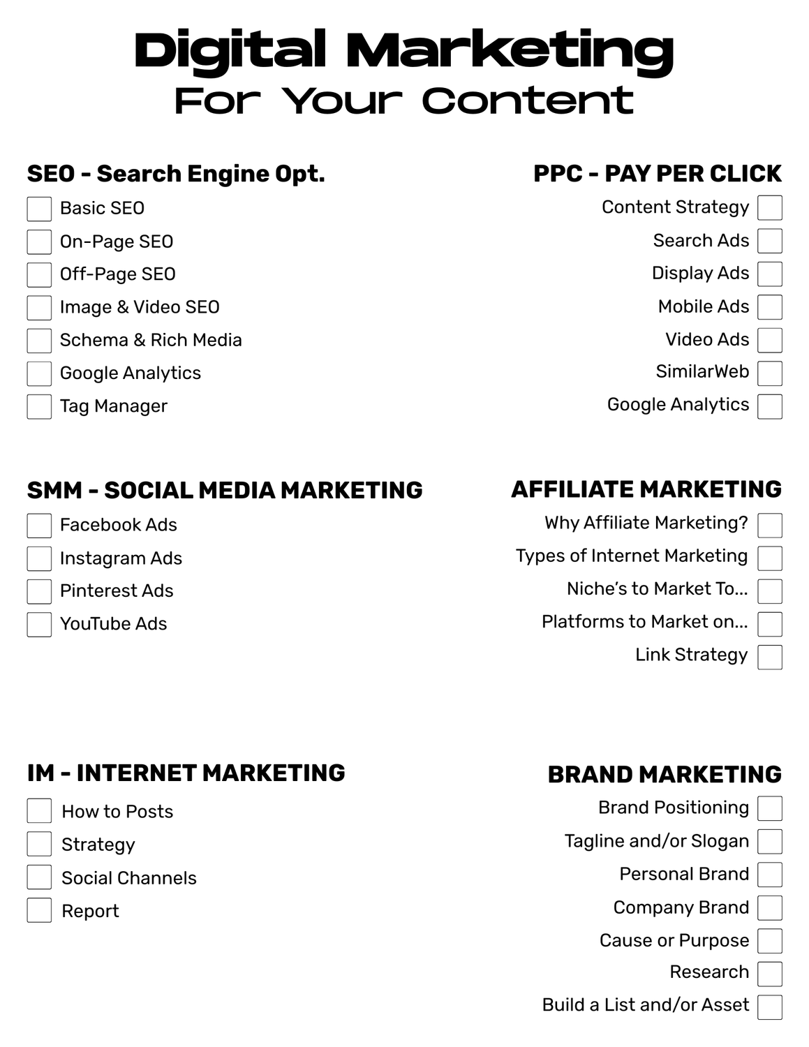 Once the "heavy lifting" is done, you can look at the "Types of Digital Marketing" to multiply their efforts.